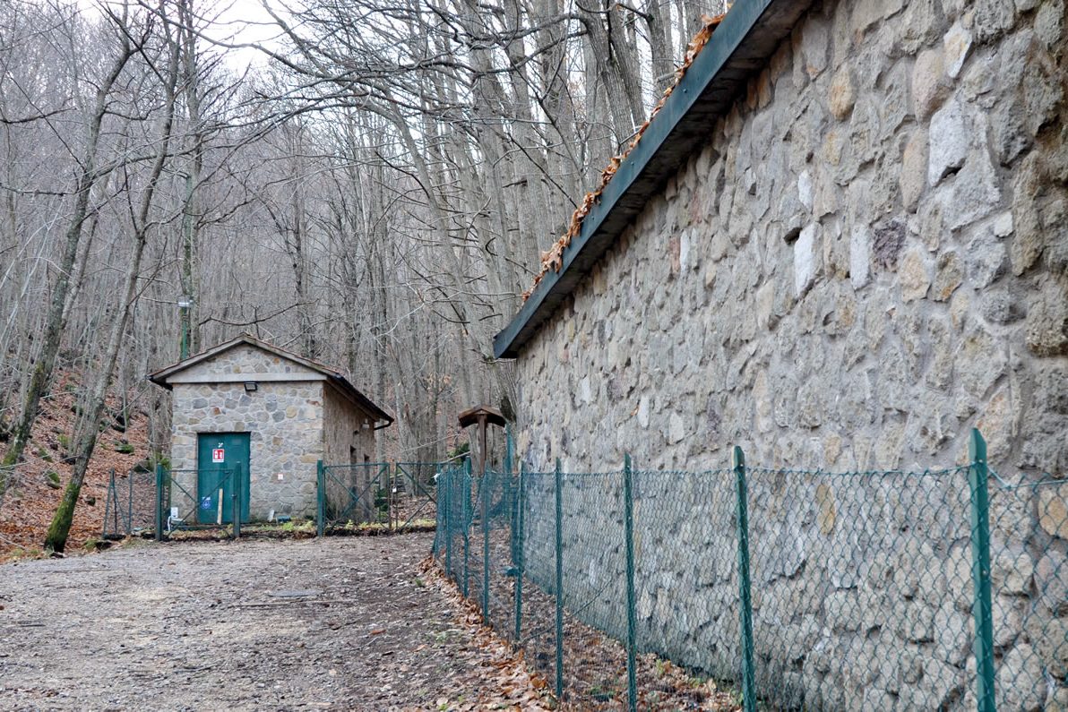 La Sorgente dell’Ermicciolo sgorga in località Vivo d’Orcia, a circa 1000 metri di altitudine ed è una delle sorgenti più importanti del monte Amiata con una portata di 180 litri al secondo. Deve il suo nome a un piccolo eremo, detto Ermicciolo, che sorge di fianco all’edificio di presa. La sua fondazione è attribuita a San Romualdo all’inizio dell’XI secolo. Qui, sotto la regola benedettina e poi quella camaldolese, edificò l’eremo nei pressi del laghetto preesistente alla realizzazione dell’acquedotto, e più a valle un monastero, dove poi è sorta la Contea della Famiglia Cervini. Oggi dell’eremo resta solo l’Oratorio di San Benedetto, una piccola chiesa romanica di proprietà della stessa Famiglia Cervini, ed una cella utilizzata fino agli anni ‘50 come seccatoio per le castagne. L’acquedotto fu realizzato dal Comune di Siena su progetto dell’Ingegnere Luciano Conti, con lo scopo di portare acqua potabile fino alla città e risolvere l’annoso problema dell’approvvigionamento idrico, che affliggeva il capoluogo fin dalla sua nascita. Un’opera di alta ingegneria, i cui lavori iniziati nel 1908 terminarono nel 1914, quando l’acqua arrivò a porta San Marco. Furono stesi 63 chilometri di tubi in ghisa e costruito l’edificio di presa, proprio dove l’acqua sgorgava dalla dura roccia trachitica, in modo da preservarne freschezza e purezza. Oggi l’edificio è visitabile su prenotazione e lo scenario che si mostra agli occhi del turista è estremamente suggestivo ed emozionante.